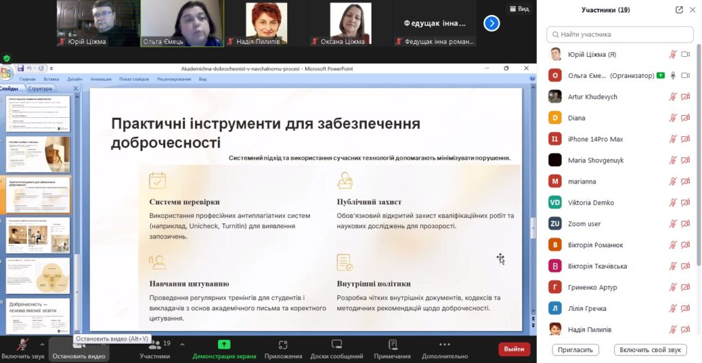 Такий формат діалогу допомагає формувати спільну культуру доброчесності в університетській спільноті, що є запорукою розвитку сучасного освітнього середовища.